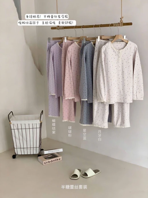 0911b56-BỘ COTTON MẶC NHÀ CHẤM BI VIỀN REN