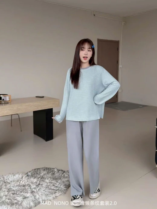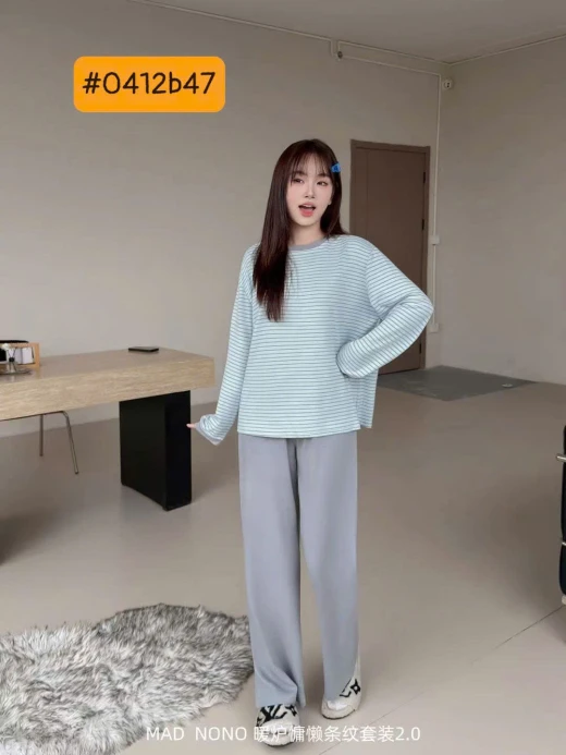#0412b47 BỘ MẶC NHÀ ÁO KẺ NGANG NỮ Set bộ mặc nhà thoải mái cho các nàng đây ạ 4 màu đánh số sz 40-70kg 🌸 giá 212k 🐬 chốt 4/12