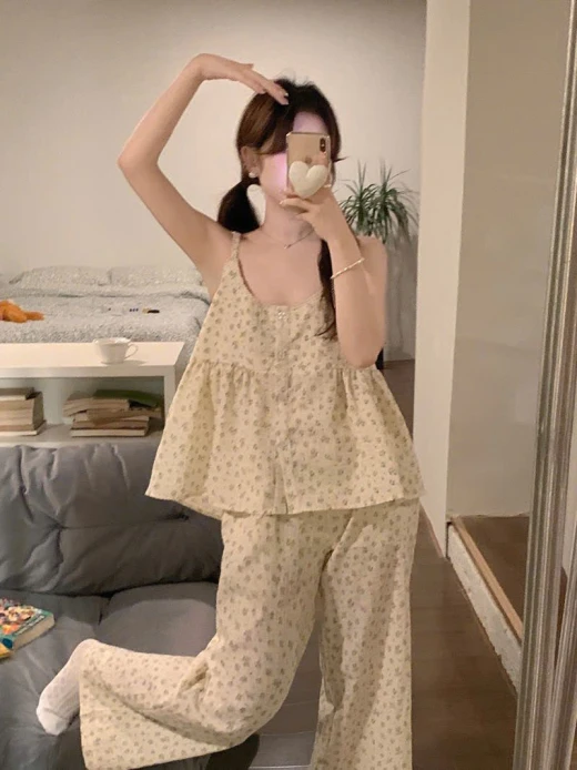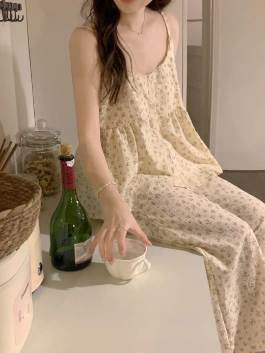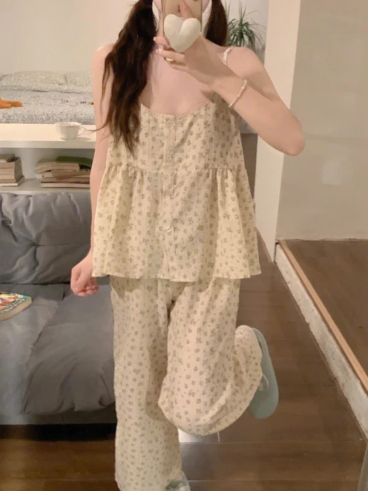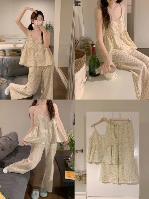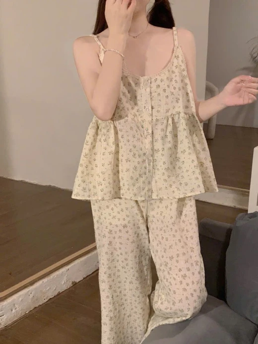 BỘ MẶC NHÀ HOA NHÍ QUẦN DÀI ÁO 2S
