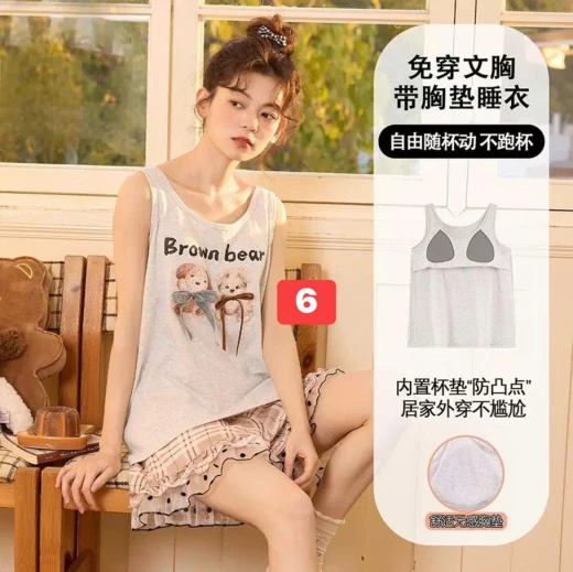 #1104c18 #182k chốt 1104 ====== BỘ MẶC NHÀ NỮ SÁT NÁCH KÈM BRA QCCC Mặc ở nhà cũng phải xinh – bộ mặc nhà kèm bra vừa thoải mái, vừa gọn gàng, kèm bra tiện lợi có thể mặc ra ngoài đi chợ, đi dạo phố ✔6 mẫu đánh số ✔Size : M-2XL (bảng sz tham khảo) M 35-46kg L 47-56kg XL 57-65kg 2XL 65-70kg 🚛 Hàng od 2-5w, chốt 11.04
