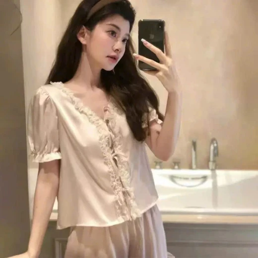Bộ lụa siêu mát lịm, bánh bèo xinh xẻo lắm luôn