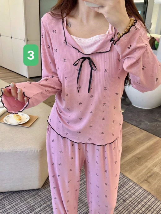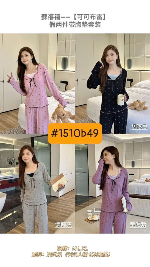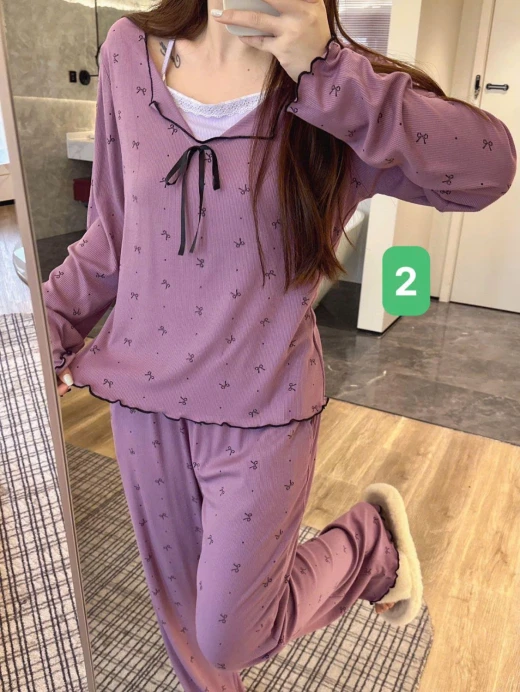 #1510b49 BỘ NGỦ COTON GÂN MỀM CỔ NƠ Màu: hồng , tím , đen , xám Size: M-XL 🌸 Giá 207k 🐬 Chốt 1510