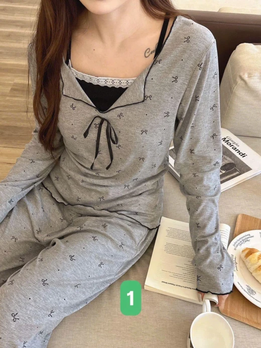 1510b49-BỘ NGỦ COTON GÂN MỀM CỔ NƠ