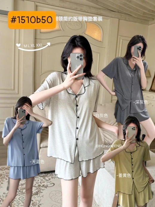 #1510b50 BỘ NGỦ COTTON CỘC TAY Màu : xám đậm , xám trắng , xanh , vàng Size : M-2XL 🌸 Giá 180k 🐬 Chốt 1510