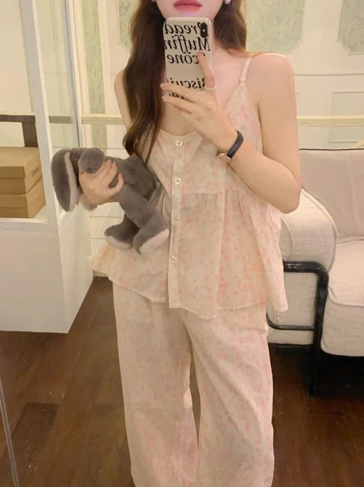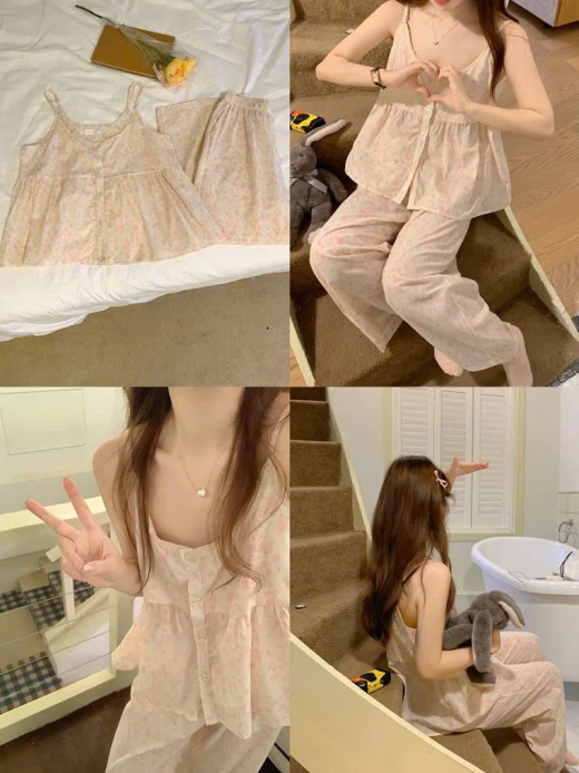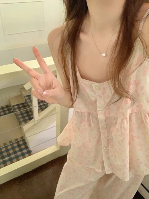 #2411b40 BỘ NGỦ HOA HỒNG 2 DÂY QUẦN DÀI ✔Size : S-XL sz S (42-47kg) sz M (47-52kg) sz L (52-57kg) sz XL (57-62kg) 🌸 giá 237k 🐬 chốt 24/11