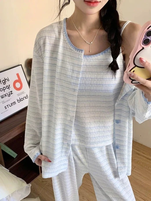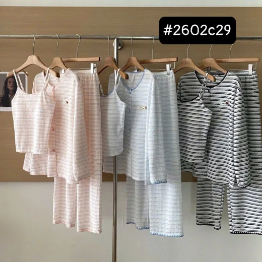 #2602c29 BỘ NGỦ KẺ 3 CHI TIẾT NỮ ‼ ‼ ‼ BỘ NGỦ NỮ KẺ 3 CHI TIẾT 🍑 Thiết kế trẻ trung, vẫn giữ nét nữ tính dịu dàng 🍓 Có 3 màu xinh xắn, đánh số cho nàng dễ lựa ✅ Size M – 2XL: • M: 47–52kg • L: 53–56kg • XL: 56–62kg • 2XL: 62–68kg 📷Giá: 240k 🐬Chốt 26/2
