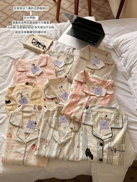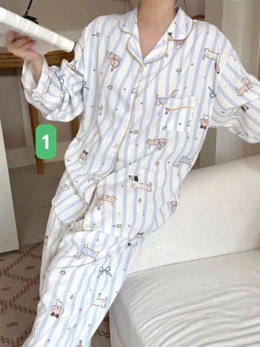 #1011b54 BỘ NGỦ PIJAMA DÀI TAY CHO NỮ Bộ pijama xinh ơi là xinh. Các nàng nên có vài bộ mặc hè 9 màu đánh số sz XL-2XL XL: 45-62kg 2XL: 62-72kg 🌸 giá 176k 🐬 chốt 10/11