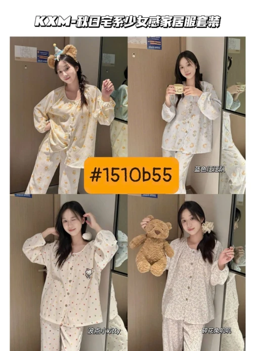 #1510b55 BỘ NGỦ VẢI THÔ HỌA TIẾT DỄ THƯƠNG Màu: 4 màu đánh số Size: M-XL 🌸 Giá 157k 🐬 Chốt 1510