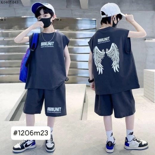 #1206m23 ♻️♻️ BỘ SÁT NÁCH BÉ TRAI ♻️♻️ #145k/b , từ 2b #135k/b Quá cá tính các bác ạ. cả set rẻ bèo Vừa mát mẻ lại năng động ✅ 2 màu: trắng - xám đậm ✅Size: 120-160 120: 18-22kg 130: 22-26kg 140: 26-30kg 150: 30-35kg 160: 35-40kg Màu sắc thực tế của sp có thể đậm hoặc nhạt hơn hình do ánh sáng và hiệu ứng chụp Giá: 102k chốt 12.06