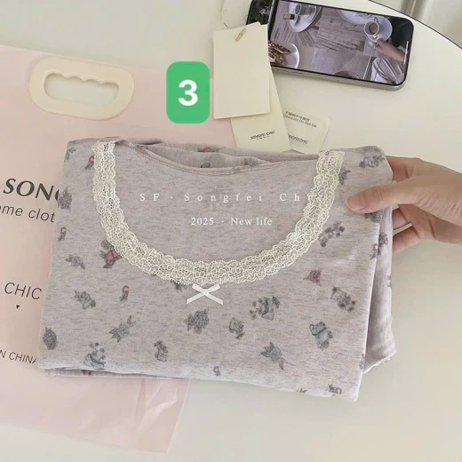 #2810b34 BỘ THU ĐÔNG HOA NHÍ PHỐI REN Mặc ở nhà mà vẫn sang – chuẩn gu phái đẹp 4 màu đánh số ✅sz M-L Size M 40-55kg Size L 55-70kg 🌸 giá 178k 🐬 chốt 28/10