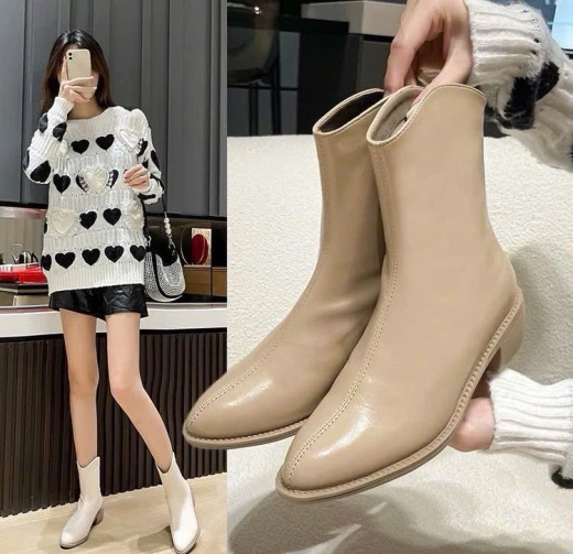#1511m50 ? BOOT DA TRƠN MŨI NHỌN NỮ ? Cứ cái gì rẻ đẹp thì chốt thôi các bác Tranh thủ đầu mùa đi ạ ? ?? E gom đủ 4 màu đen-trắng ngà-nâu-be Sz 35-39 ?Zá : #239k/đôi Màu sắc của sản phẩm thực tế có thể đậm or nhạt sáng or tối hơn ảnh do hiệu ứng ánh sáng & góc chụp sản phẩm . Giá: 185k Chốt 15.11