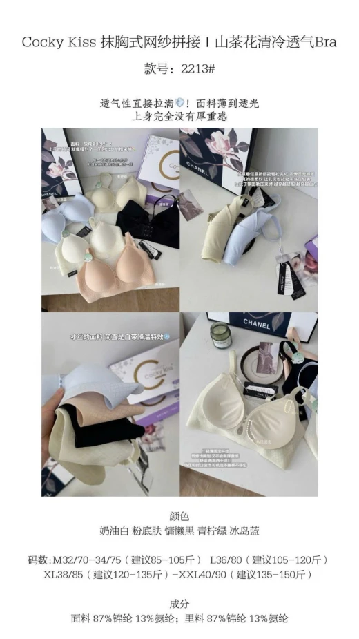 #0312b16 BRA SU LẠNH SIÊU MỎNG Áo bra Cocky Kiss dành cho nữ, nhẹ và thoáng khí, áo ngực lụa mỏng 5 màu đánh số ✅Size : M-XXL M dưới 55kg L dưới 60kg XL dưới 65kg XXL dưới 72kg 🌸 giá 106k 🐬 chốt 3/12