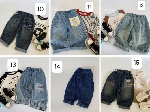 #0401c22 BST 15MẪU QUẦN JEAN MAIBAO DIỆN TẾT Em nói thật là ngồi cả ngày k hết mẫu đẹp nhà này túm gọn lại 1 tus để các chế lựa luôn cho kịp diện tết nhé ạ sz: 90-140 Chi tiết note từng hình ạ Giá: M1+4+5+8: 171k M2+6+: 179k M3+11+: 164k M7: 152K M9: 167k M10:183k M12: 187k M13: 165K ( còn 120+140) M14: 165k ( còn 90+100+130+140) M15: 187k ( còn 100+110+130+140) Chốt 0401