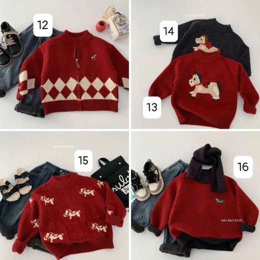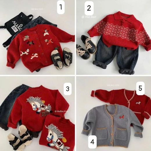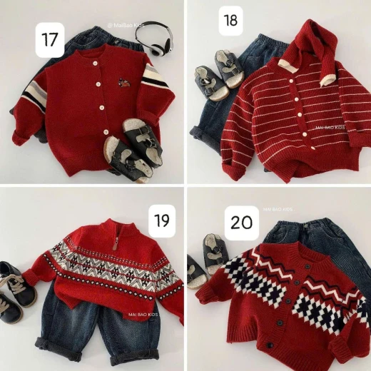 #0401c21 BST 20 MẪU ÁO LEN ĐỎ MAIBAO DIỆN TẾT sz: 90-140 Chi tiết note từng hình ạ Giá: M1: 190k M2: 127k ( hết sz 130-140) M3: 220k M4-5: 203K M6+10+13+14+17: 190k M7-8-9+15: 205k M11+16+18+:225k M12+19+20: 195k Chốt 0401