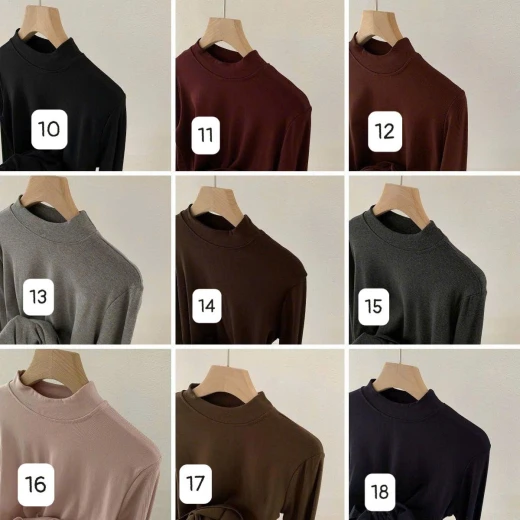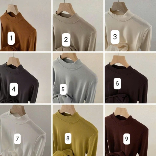 #1912b65 ♻️♻️BST ÁO GIỮ NHIỆT TRƠN MÀU NỮ ♻️♻️ *** ép, rút gọn, lên phong cách đẹp ✅18 màu đánh số ✅freesz 60kg Màu sắc của sản phẩm thực tế có thể đậm hoặc nhạt sáng hoặc tối hơn ảnh do hiệu ứng sáng & chụp góc của sản phẩm Giá: 116k Chốt 1912