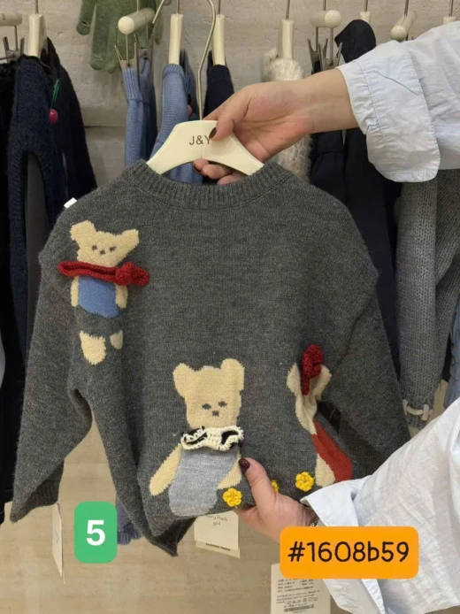 #1609b59 BST ÁO LEN HOẠT HÌNH BG như Họa tiết dễ thương – bé nào cũng mê 5 mẫu đánh số ✅sz 90-150 90: 11-13kg 100: 13-15kg 110: 15-17kg 120: 17-20kg 130: 20-25kg 140: 25-30kg 150: 30-35kg 🌸 giá 220k 🐬 chốt 1609