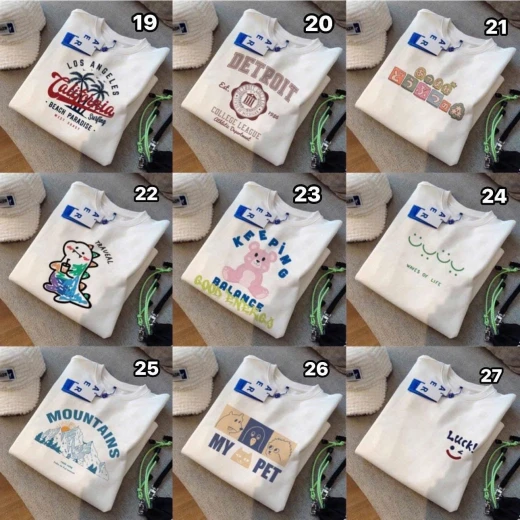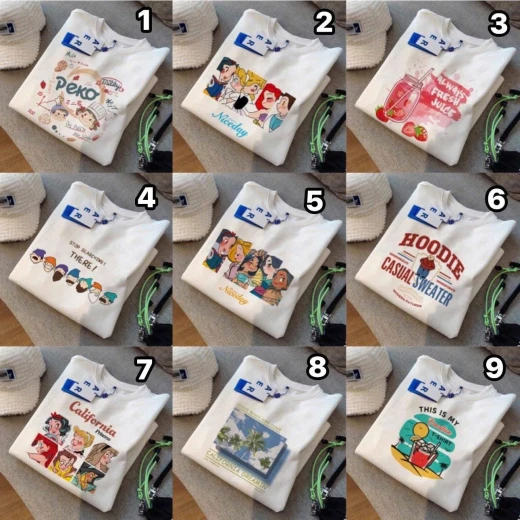 #0903c22 💯BST ÁO PHÔNG TRẮNG HOẠ TIẾT ✨ Form rộng dễ mặc – che dáng cực xinh ✨ Họa tiết cartoon dễ thương chuẩn style Hàn – ins hot trend ✨ Phối cùng quần jean, chân váy hay short đều cực xinh #129k/c , từ 2c #119k/c ❗️ Sz S- 2Xl S 40-50kg M 50-60kg L 60-70kg Xl 70-77kg 2Xl 77-87kg ❗️ Các mẫu đánh số Giá: 87k Chốt 0903