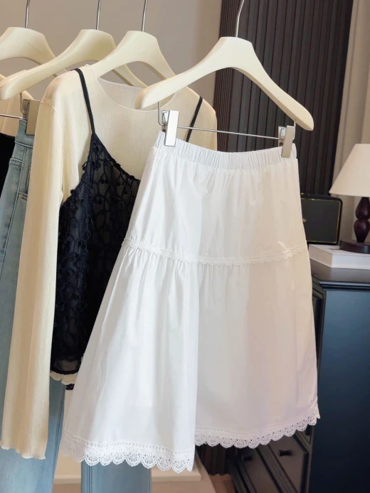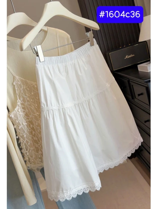 #1604c36 #171k chốt 1604 ========= CHÂN VÁY CHỮ A DÁNG NGẮN VIỀN REN Váy xinh cho nàng năng động đây �Nhẹ nhàng, nữ tính mà vẫn trẻ trung�Mix áo thun hay croptop đều đỉnh 2 màu trắng đen ✅Freesize 🌸 giá 171k 🐬 chốt 16/4
