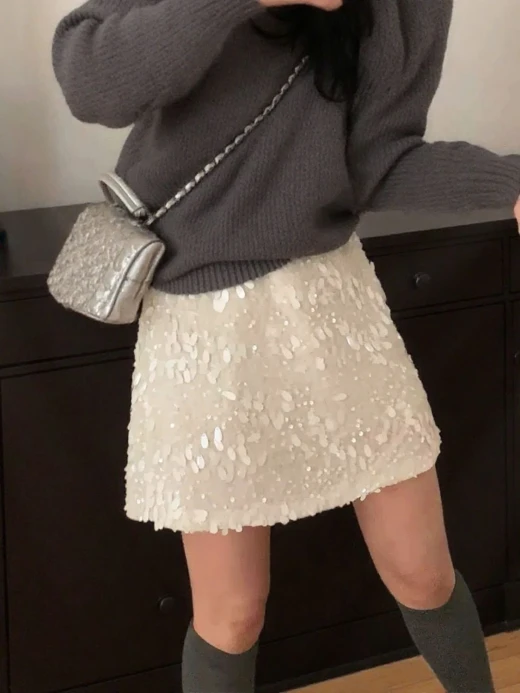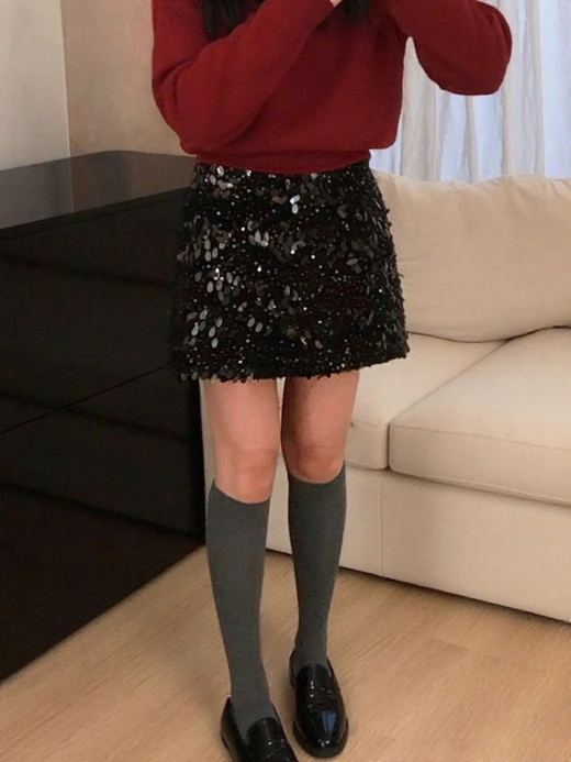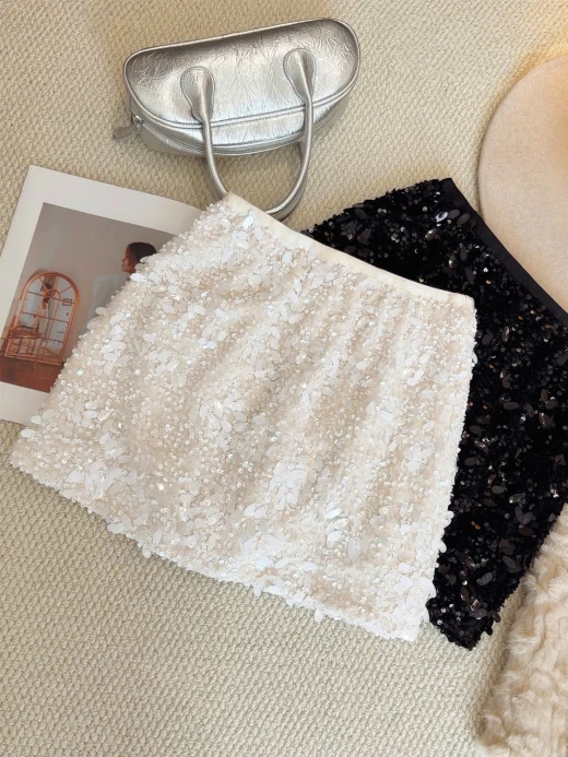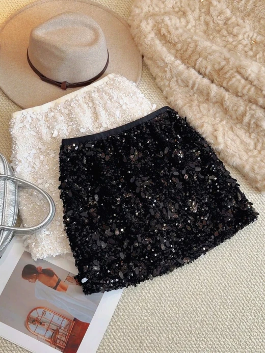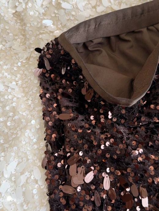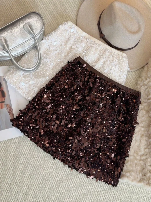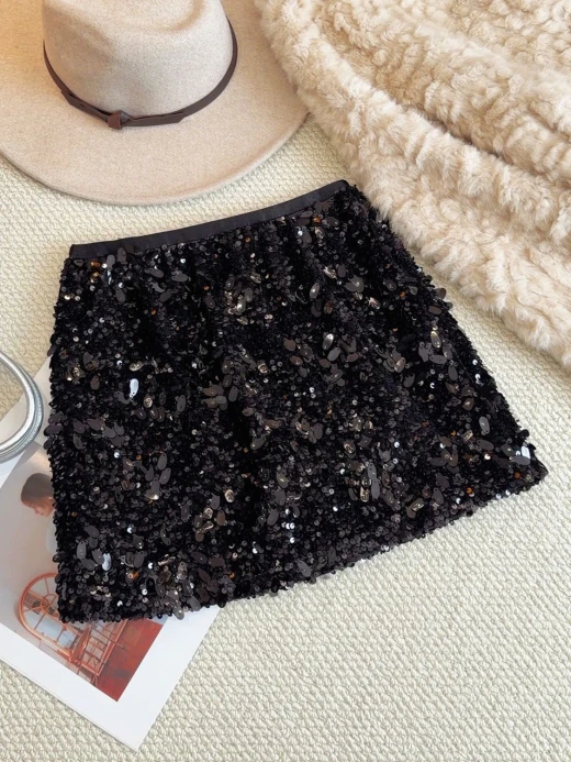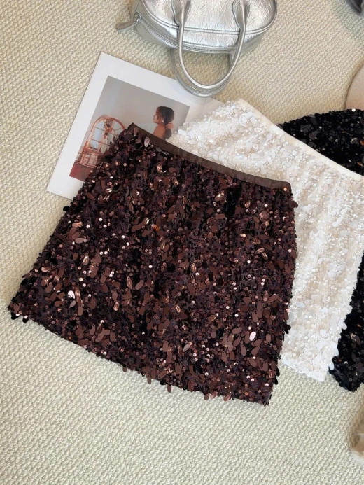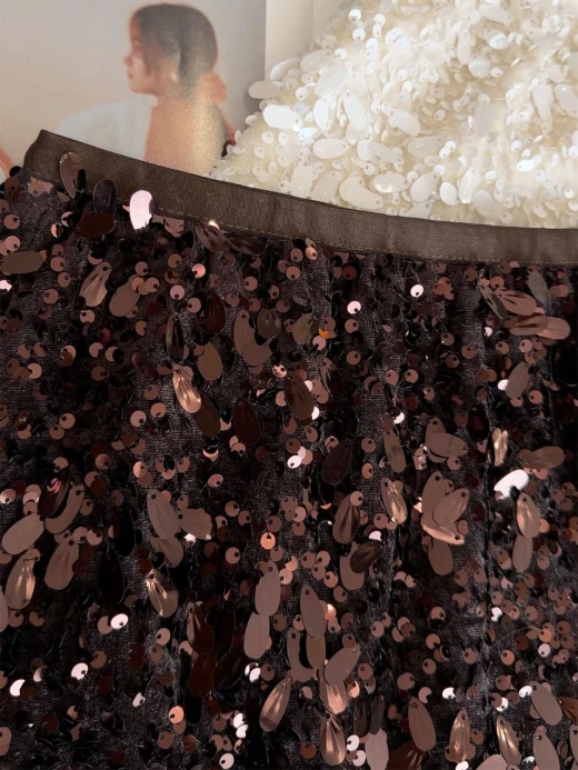 #1912b57 CHÂN VÁY ĐÍNH SEQUIN DÁNG A ANNA Một thiết kế siêu sịn, siêu sang mà lại dễ mix đồ cho các nàng luôn ạ 3 màu: đen, be, nâu sz M-L 🌸 giá 174k 🐬 chốt 19/12