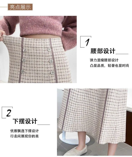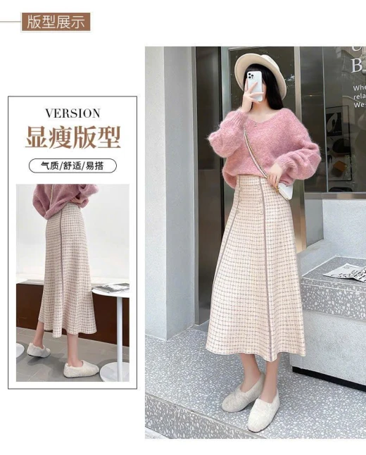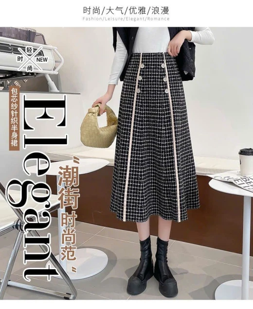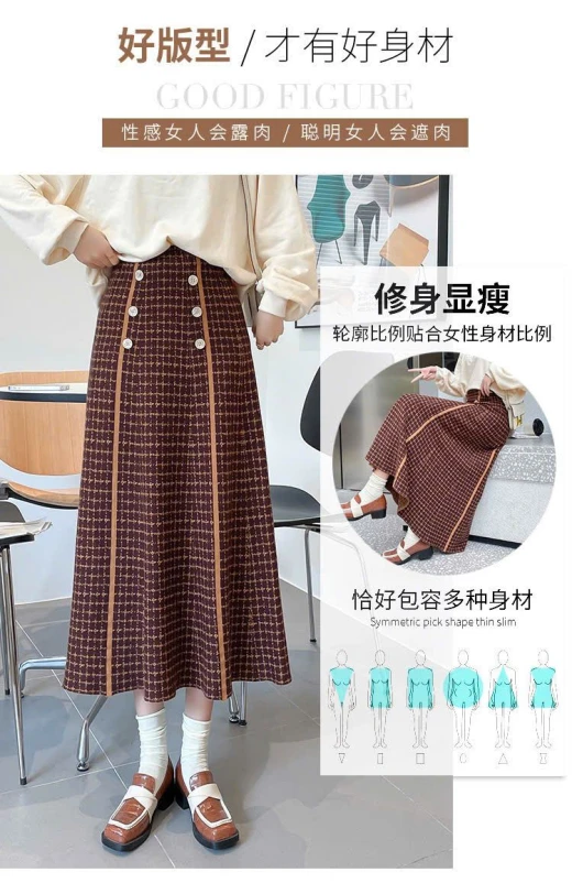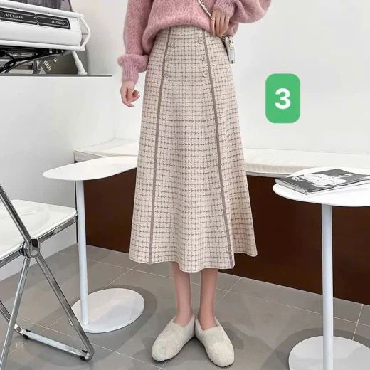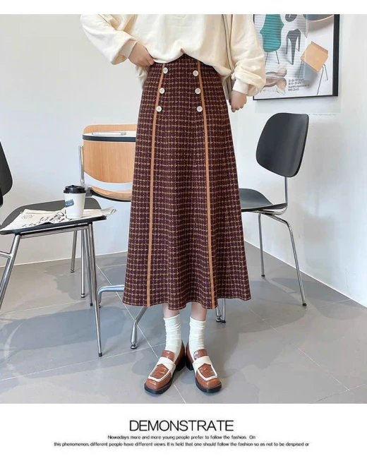 Chân váy dáng dài phối cúc thanh lịch, ấm áp, phù hợp mặc mùa thu đông.