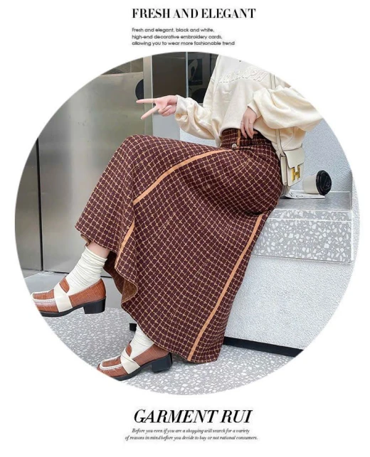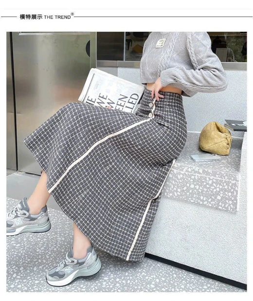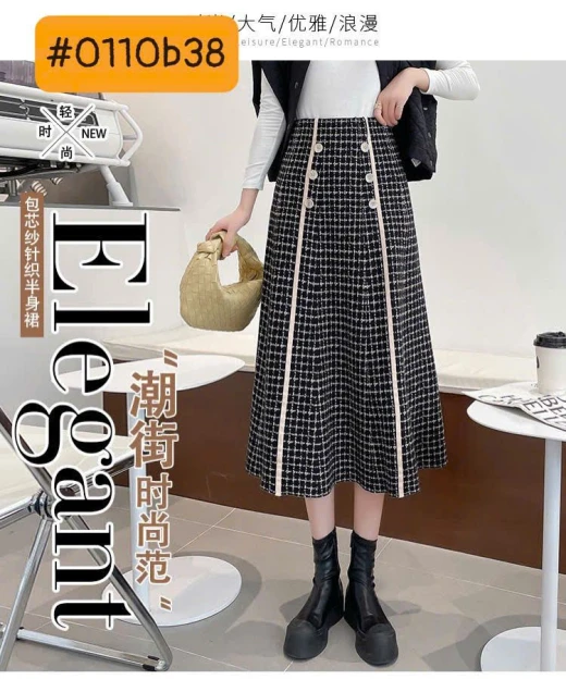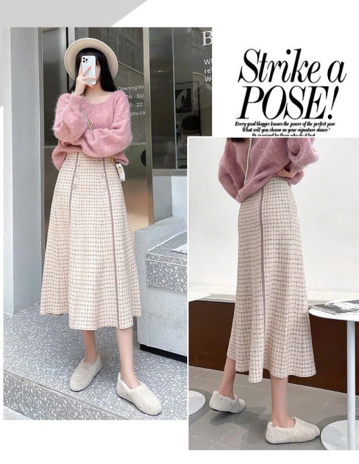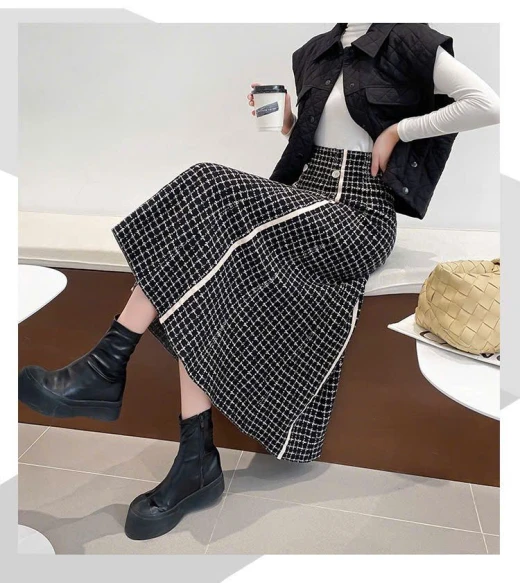 CHÂN VÁY KẺ DÁNG DÀI PHỐI CÚC
