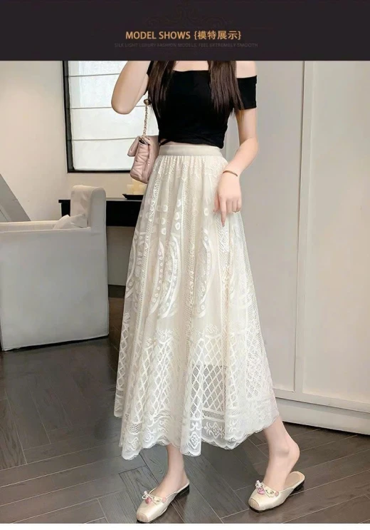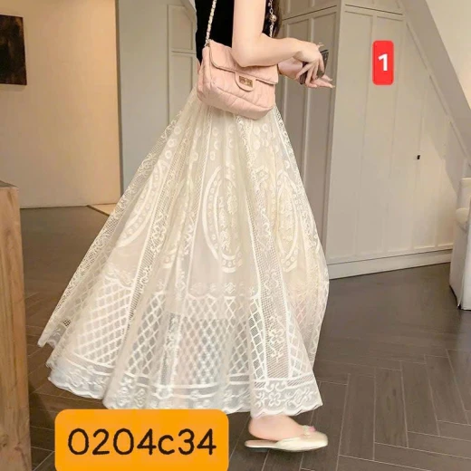 #0204c34 ‼ ‼ ‼ CHÂN VÁY REN DÀI XÒE NHẸ PHONG CÁCH THANH LỊCH Thiết kế chân váy dài dáng xòe nhẹ, bay bổng, tôn dáng cực kỳ nữ tính. Chất liệu ren cao cấp phối lớp lót bên trong, tạo độ bồng đẹp mắt ✅️ 3 màu đánh số ✅ freesz <60kg, eo 60-92cm ☘️Giá: 134k 🐬Chốt 2:4