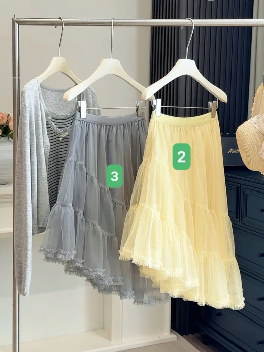 #1203c50 CHÂN VÁY TẦNG CHÉO VOAN BÈO ANNA Chất voan mềm nhẹ, nhiều tầng tạo độ xòe tự nhiên. Thiết kế bèo lai nhẹ nhàng, form dài nữ tính, che khuyết điểm tốt 4 màu đánh số ✅Freesize đến 67kg 🌸 giá 198k 🐬 chốt 1203