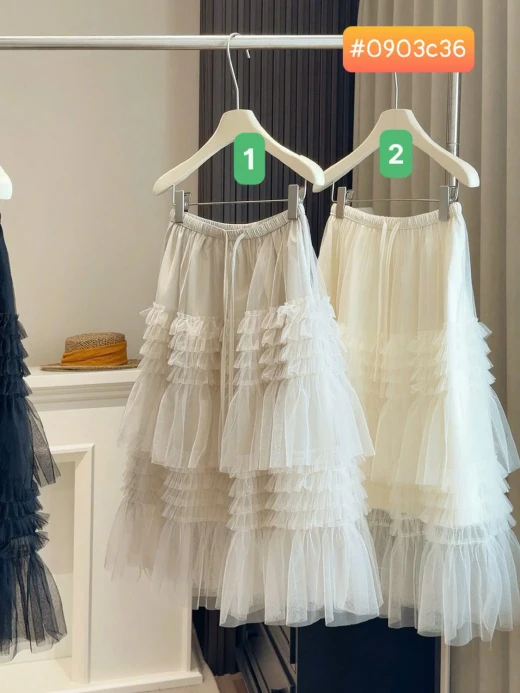 #0904c36 #217k chốt 0904 ====== CHÂN VÁY VOAN TẦNG ANNA DÁNG A Thiết kế midi dáng chữ A với chất voan lưới mang hơi hướng Pháp, nhẹ nhàng – ngọt ngào – trẻ trung. Item “must-have” dễ phối, cân đẹp nhiều phong cách từ nữ tính đến thanh lịch. 3 màu đánh số ✅Freesize dưới 70kg 🚛Hàng od 2-5w, chốt 0904
