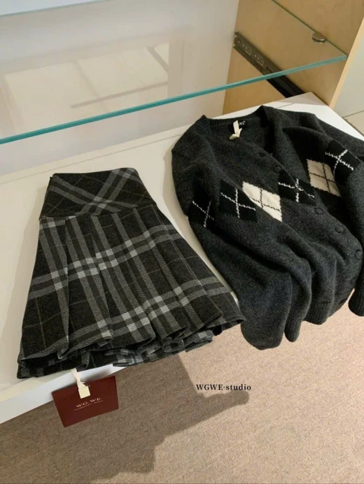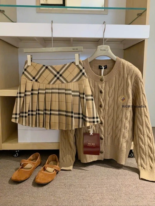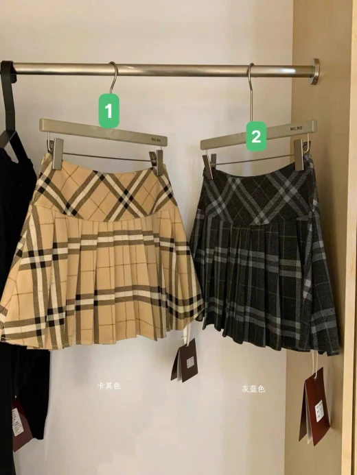 #0301c51 CHÂN VÁY XẾP LY KẺ BBR NHÀ WGWE Mê cái tone nâu tây này quá đi Diện đi chơi đảm bảo sang- sịn- hịn lắm ạ 2 màu đánh số sz S-M 🌸 giá 195k 🐬 chốt 0301