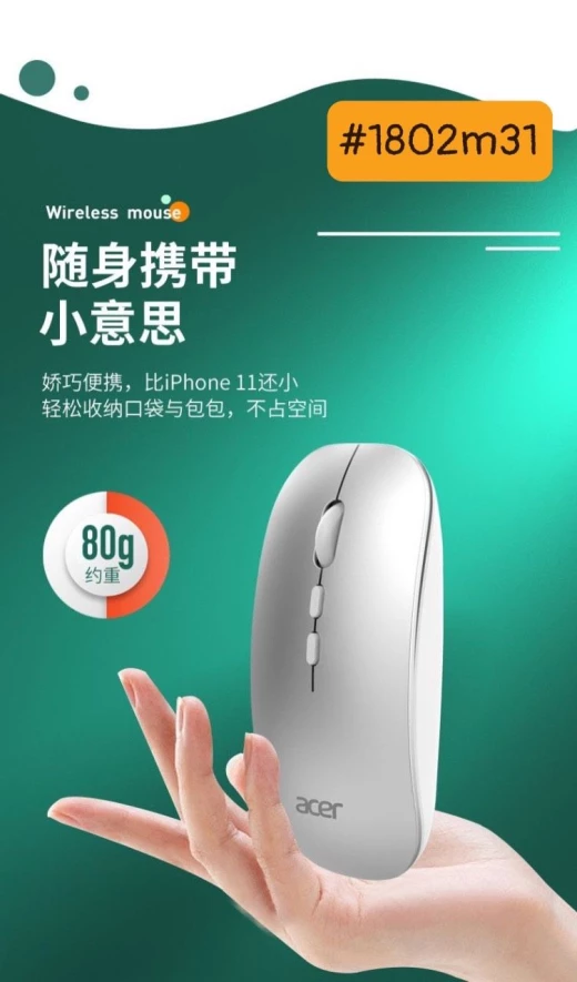 #1802m31 ?? GOM GẤPPPPP ❗❗️CHUỘT A.C.E.R AUTH #SALEEEE 60%%% CHUỘT KHÔNG DÂY CHỐNG ỒN B nào hay lv đêm chắc cần nè, âm thanh click chuột chỉ nhẹ như tiếng lá rơi ? Nhanh tay nhé ce ơiiii, sale trong vòng 72h nữa thôi ạ nên em gom gấp Chuột k dây hãng a.c.e.r sạc usb nha mn, nhỏ gọn tiện lợi quá luôn , hãng này thì em mua đồ điện tử nhiều lắm rồi , dùng phê lắm , đẹp mà dùng bền ? 4 màu: đen, trắng, bạc, hồng ✅ Kết nối Bluetooth ✅ Loại sạc pin =USB ✅ Pin: 500mAh ? giá 95k ? chốt 18/2