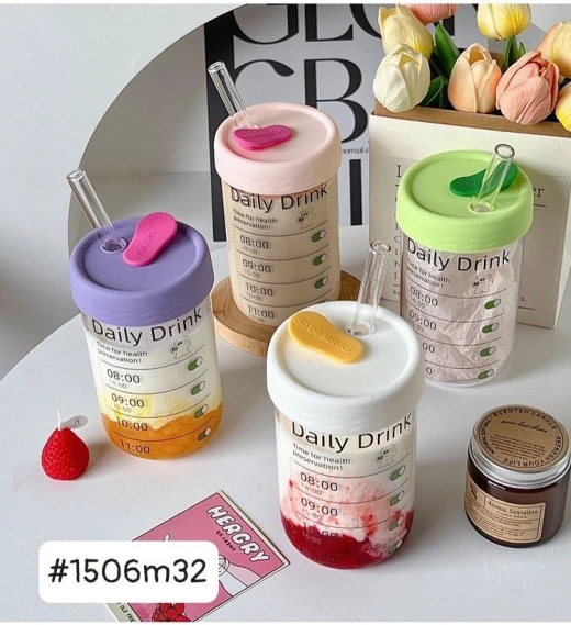 #1506m32 CỐC NƯỚC THỦY TINH DAILY DRINK Cốc có ống hút tiện lợi và đẹp mắt. Dung tích 600ml lớn chứa được nhiều nước hơn 6 màu đánh số ✅Dung tích 600ml ? giá 60k ? chốt 14/6