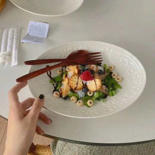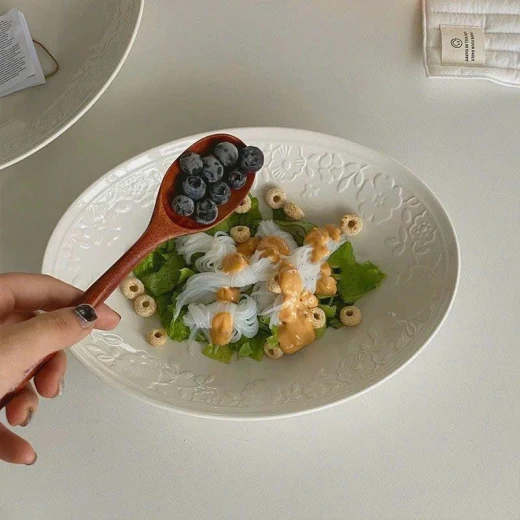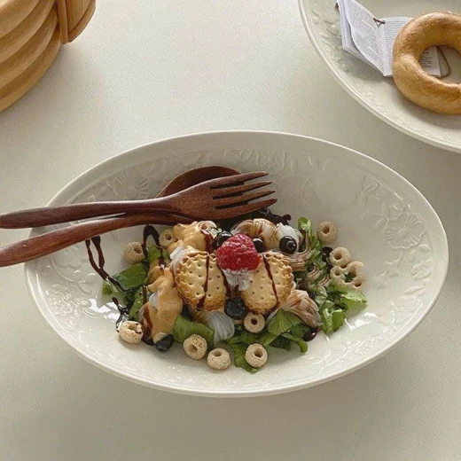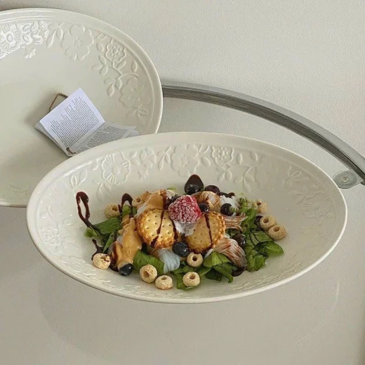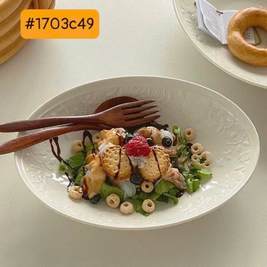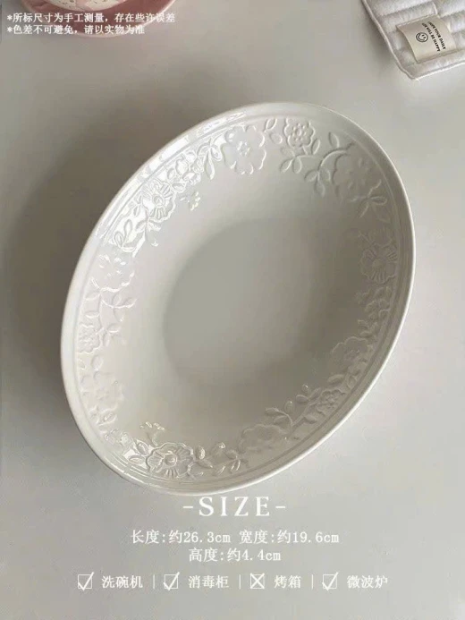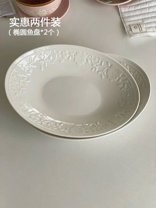 #1703c49 Đĩa oval hiện đại hoa nổi màu trắng tinh khiết,đẹp mắt.Dung tích 10inch. - sét 2 đĩa. giá: 189k/1 sét 🌸 giá 129k 🐬 chốt 17/3
