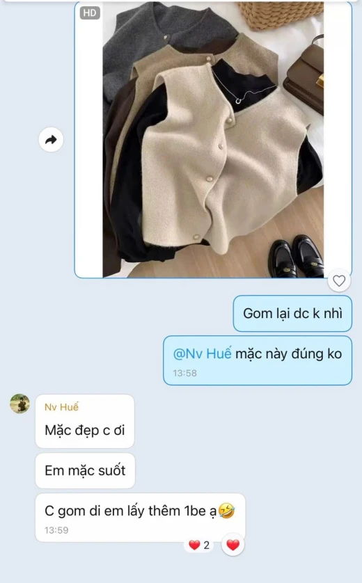 #0912b69 Kiiki thấy nv e mặc từ năm ngoái đến năm nay mặc suốt kkkk 🤣🤣 e gom lại nhaa rẻ lém lunn ‼️ ‼️ Gile len ép gom mua chung chỉ #1XXKk Áo basic mix với sơ mi, áo len hay áo giữ nhiệt đều ukila mà không sợ lỗi mốt lun ạ 📌Em gom 4 màu: trắng kem- Nâu nhạt - Xám- Đen 📌Freesize dưới 58kg Ảnh thật em chụp, chất okila các bác cứ tự tin order ạ Od China =========== chốt 0912 giá 77K/1C