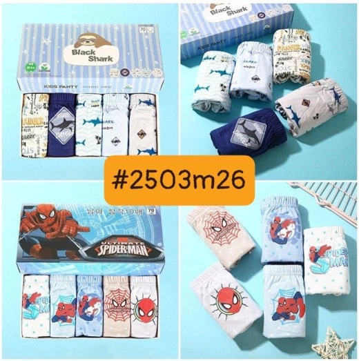 #2503m26 HỘP 5 QUẦN CHÍP TAM GIÁC SIÊU NHÂN, KHỦNG LONG ▪️ Có 23 mẫu đánh số. Chất liệu: cotton ▪️ Size: 60/65/70/75/80/85 ▪️ Mỗi hộp 5 chiếc như hình ? giá 85k/h ? chốt 25.03