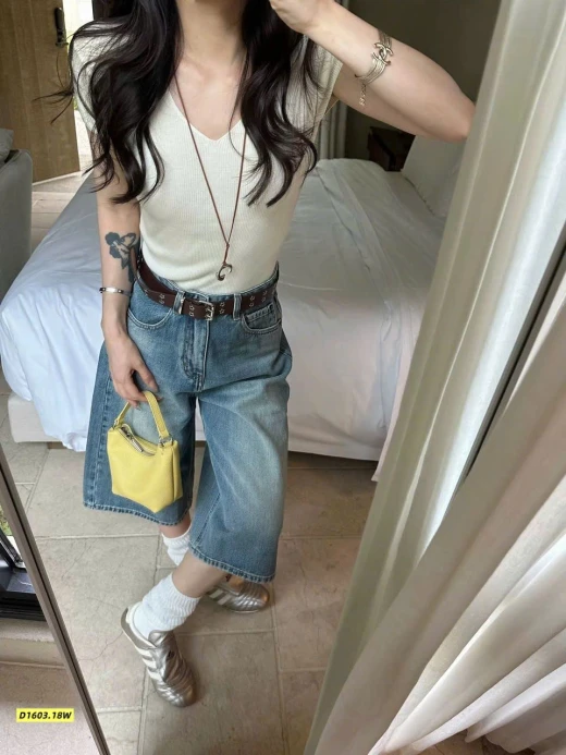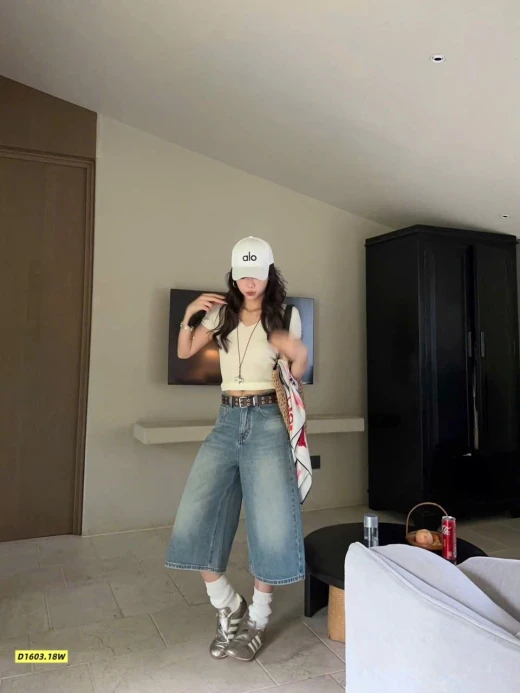 #1603c15 Quần nhà WG (9083)– Jeans ống rộng trẻ trung 🍭Form quần ống rộng siêu tôn dáng, mặc lên vừa cá tính vừa thoải mái. 🌸Chất jean mềm, đứng form, dễ phối từ áo thun, áo croptop đến sơ mi. Size SML Giá: 280k Chốt 1603