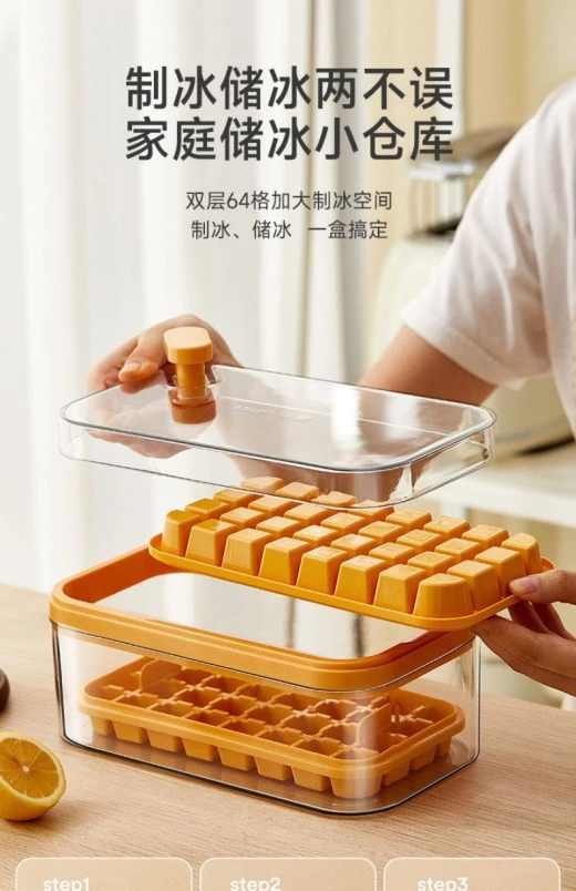 #2206m45 KHAY LÀM ĐÁ VIÊN 2 TẦNG ?? KHAY LÀM ĐÁ VIÊN 2 TẦNG TẶNG KÈM XẺNG MÚC Mỗi khay 32 viên tổng 64 viên nha các mẹ ơi, tiện lợi và xinh đẹp khi để trong tủ Hộp khay làm đá có nắp đậy kèm nút ấn tự động hiện đại phong cách Bắc Âu.Chỉ ẩn nhấn nút đã tự động rơi ra. Chất liệu: nhựa PP , silicone - Kích thước: Như Ảnh - 4 Màu : Vàng - Xanh - Tím - Trắng - Có thể xếp chồng và tiết kiệm không gian ? giá 99k ? chốt 22/6