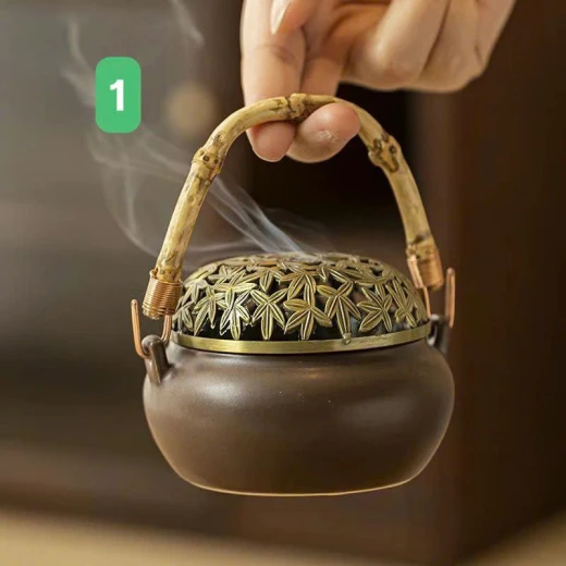 #1810b54 Lư hương mini không chỉ giúp giữ mùi hương trầm thanh thoát mà còn là tác phẩm nghệ thuật nhỏ xinh. 👉Chất liệu: Gốm – Nắp hợp kim – Quai tre 🌸 giá 110k 🐬 chốt 1810