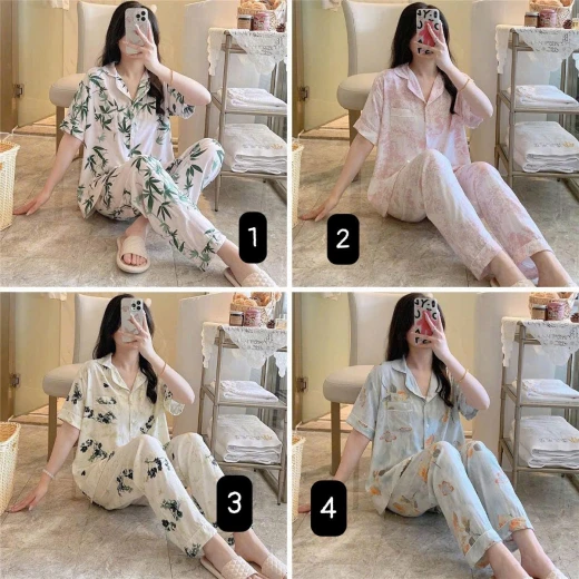 #2402c33 🔆🔆 PYJAMA CỘC TAY 2021🔆🔆 Cứ đầu năm gom bộ ngủ là đơn nổ ầm ầm các chế ạ 〽Bô ngủ bộ pijama mặc nhà bán mãi k chán, khách nào cũng thích mua, mặc nhẹ nhàng mát mẻ mà vẫn trẻ trung, lịch sự👏🏻 #XXXk/bộ ❗Bộ này mặc ở nhà hay đi đâu cũng đẹp khỏi bàn. Nhất chị em chuẩn bị ở cữ làm 2-3 bộ mà mặc đẻ cũng phải đẹp nha. ✅14 mẫu em đánh số như hình ✅Full sz L XL XXL L: 45-57kg Xl: 55-68kg 2Xl: 65-75kg gía: 165k Chốt 2402