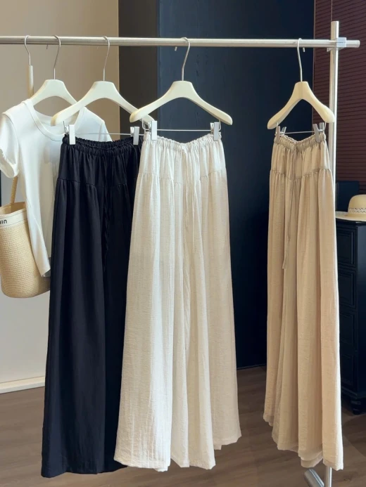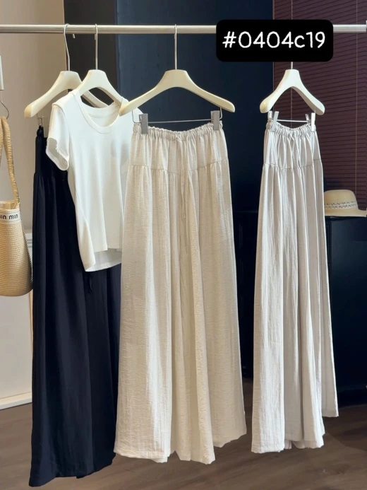 #0404c19 QUẦN CHỐNG NẮNG ỐNG RỘNG CẠP CHUN ANNA 🌤️ Nắng nóng mà vẫn muốn mặc dài cho kín đáo Đây rồi – quần chống nắng ống rộng siêu mát siêu thoải mái Ai đang tìm quần dài mùa hè thì chốt em này là chuẩn! 4 màu: xám nhạt, đen, trắng, kaki sz S-XL 🌸 giá 255k 🐬 chốt 4/4