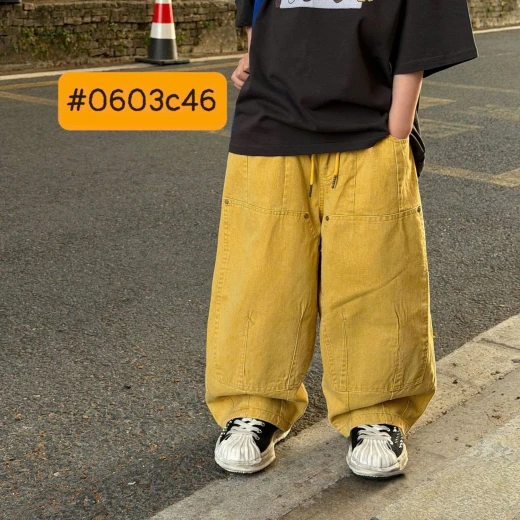 #0603c46 QUẦN JEAN MÀU TARUS #xxxk/c 2 màu: đen- vàng Sz : 90-160 Giá: quần 291k Áo thun trắng 135k Áo đen 128k Chốt 0603