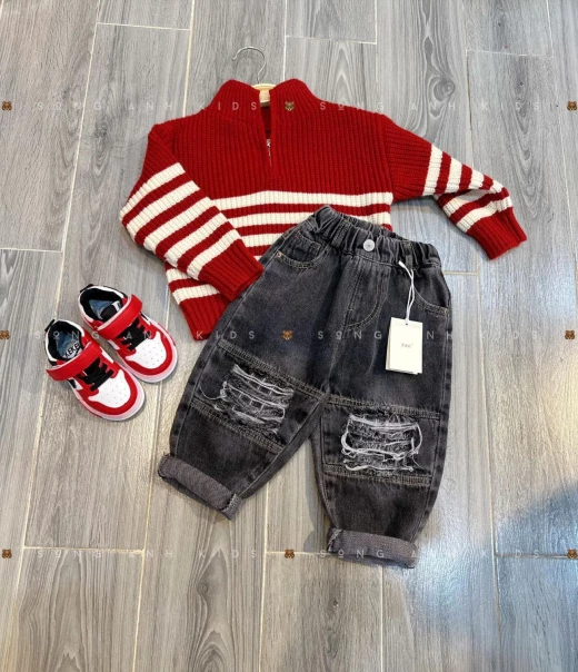 #0801a02 ❌ Quần jean rách cho bé #xxxxk Chất jean mềm kiểu dáng năng động khỏe khoắn ? Size: 90-150 Giá: 160k Chốt 08.01