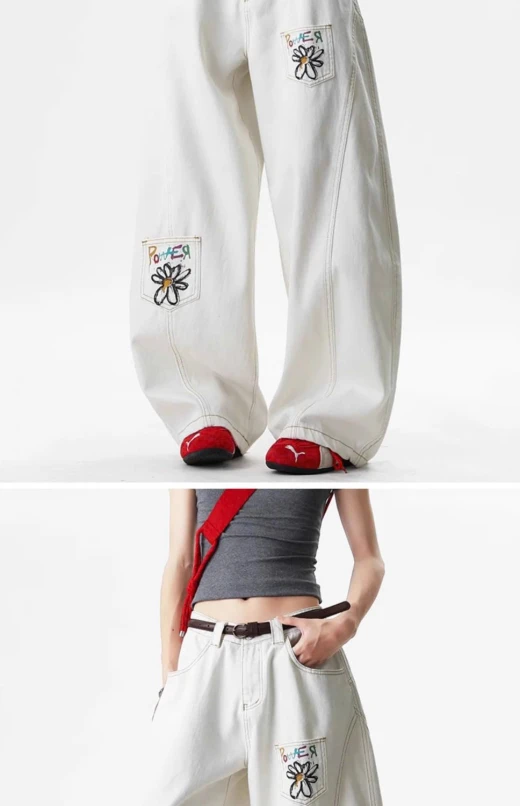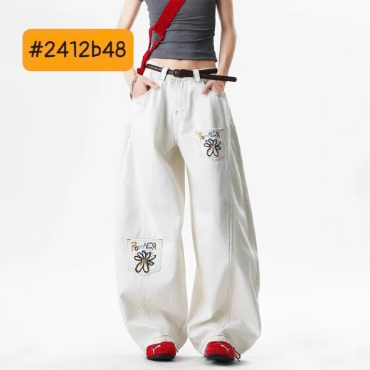 #2412b48 QUẦN JEAN SUÔNG TRẮNG CHO NỮ Chất jean dày dặn, đứng form, mặc lên che khuyết điểm tốt. Dáng ống rộng thời trang, dễ phối croptop, áo ôm, sweater ✅sz S-XL S 47-55kg M 55-60kg L 60-65kg XL 65-70kg 🌸 giá 183k 🐬 chốt 24/12