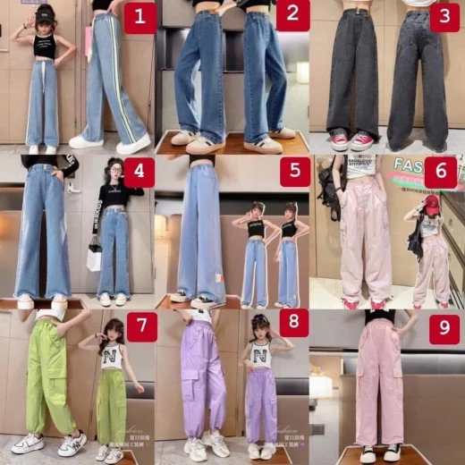 #3012a42 Khách lấy thêm e gom chuyến nữa nha ‼️ ‼️ QUẦN JEAN SUÔNG VÀ QUẦN JOGGER SIZE ĐẠI BÉ GÁI #155k/ 1c từ 2c, lẻ #165k /1c Dáng suông dễ mặc , lưng chun rất thoải mái dễ chịu , bé nào mê phong cách cá tính năng động thì diện e jogger nha Sắp vào năm học mới rồi sắm dần đi ạ ✔9 mẫu em đánh số (số 1 và số 5 hết hàng) ✔Sz 120-170 Bảng sz tham khảo : -Sz 120: 18-21kg -Sz 130: 21-25kg -Sz 140: 26-29kg -Sz 150: 30-34kg -Sz 160: 35-40kg -Sz 170: 40-47kg Giá: 125k Chốt 30/12