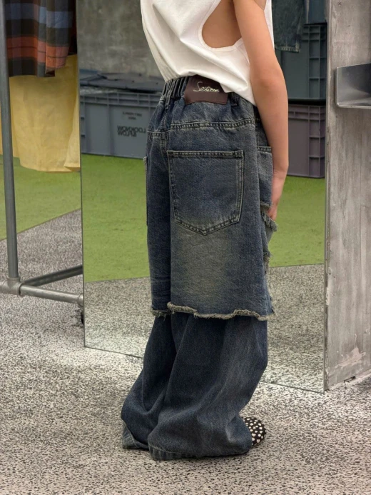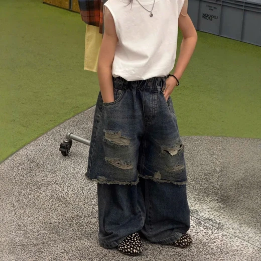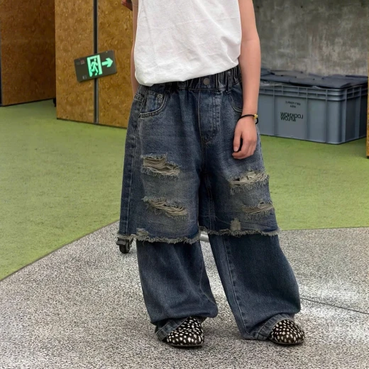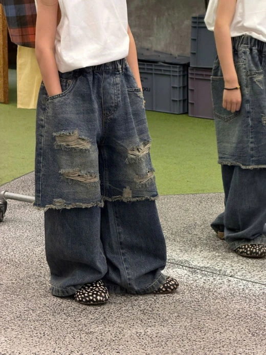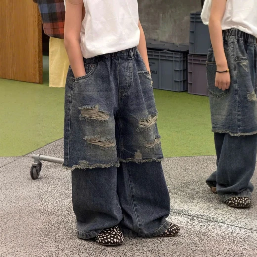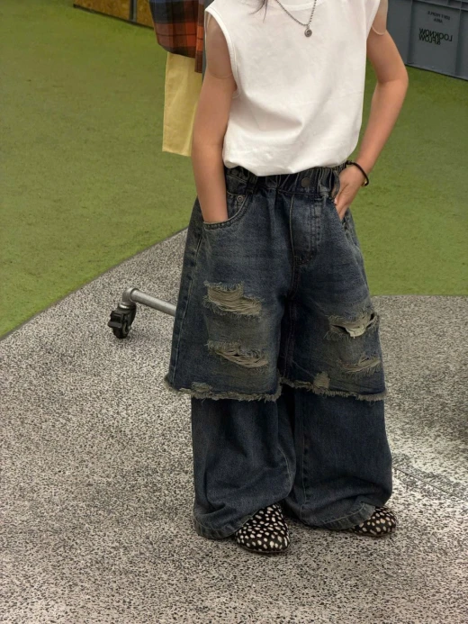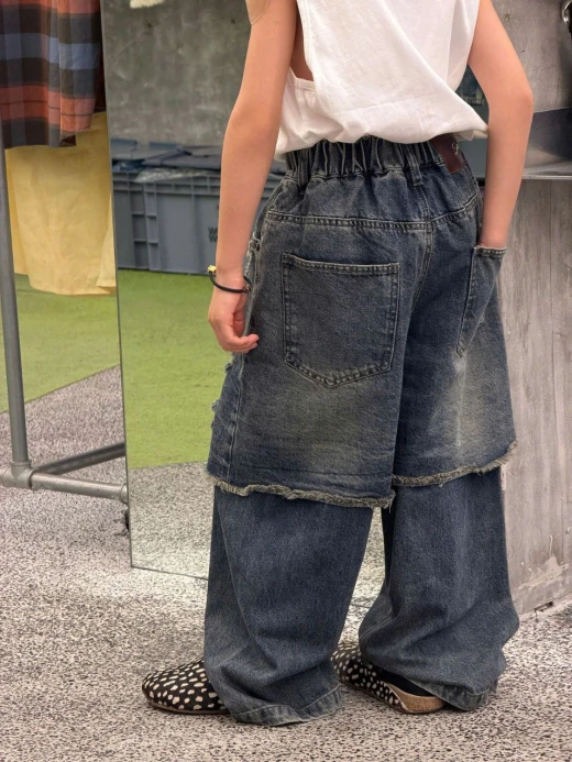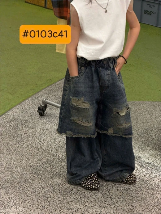 #0103c41 QUẦN JEANS GIẢ 2 LỚP RÁCH CÁ TÍNH ✔Size : 100-150 🌸 giá 280k 🐬 chốt 1/3