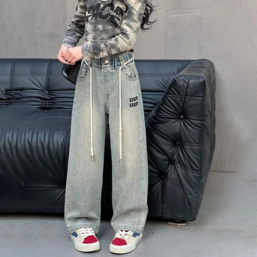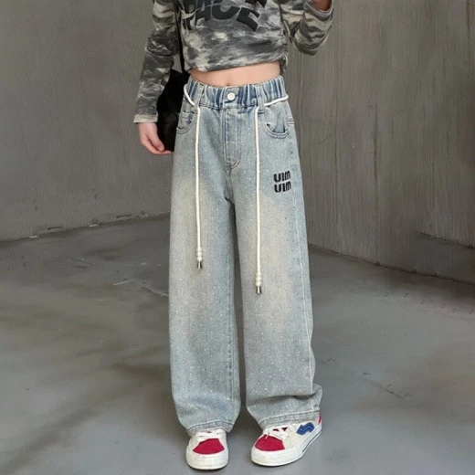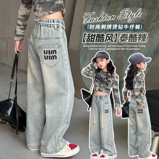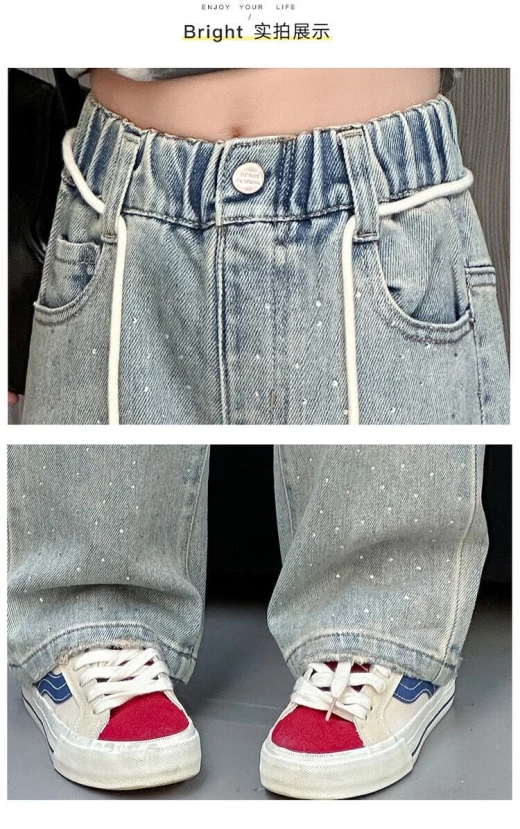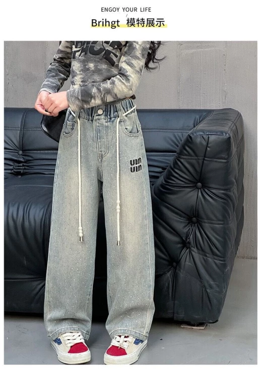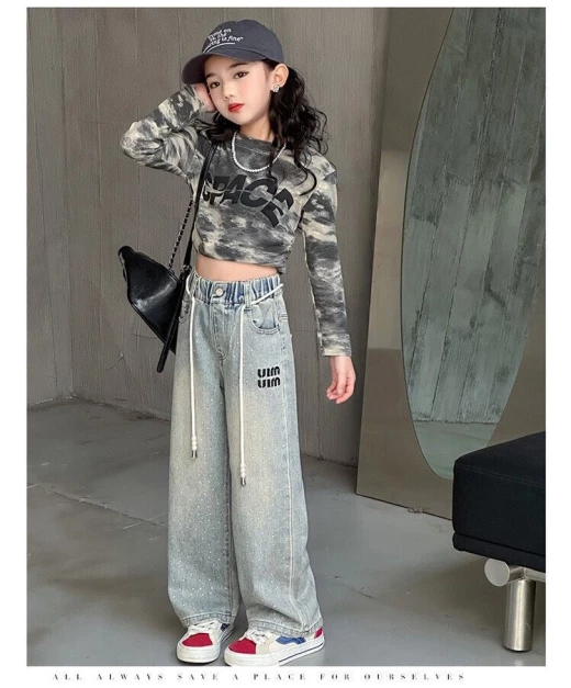 #0503m11 Chụp sơ sơ ít feedback thui ạ, không các bác lại mê quá? QUẦN JEANS MINMIN CHO BÉ GÁI ❤️❤️❤️ Thiết kế dáng rộng cạp chun bản to thoải mái Màu xanh khói cá tính, mix đồ siêu chất luôn nha ✔️size: 120-170 ?giá 176k Chốt 05.03