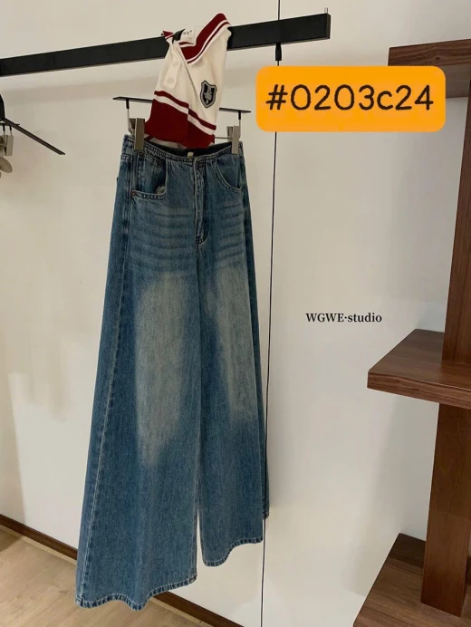 0203c24-QUẦN JEANS ỐNG RỘNG BẠC GỐI
