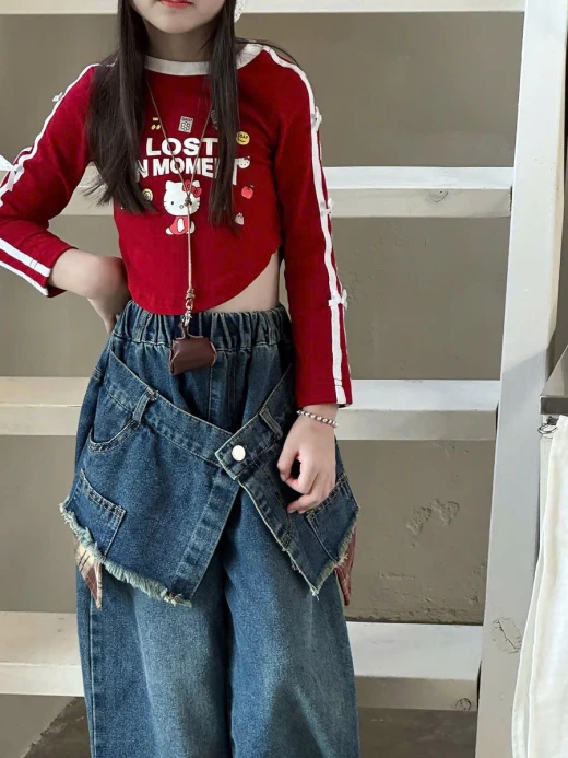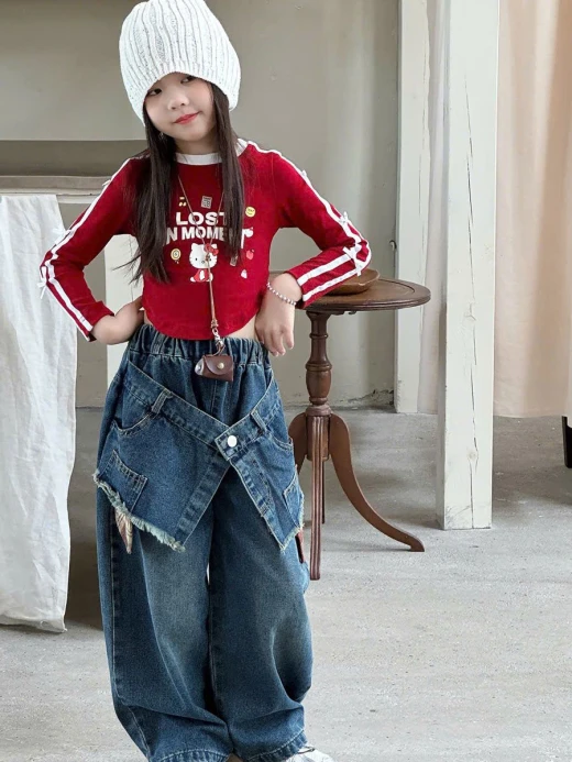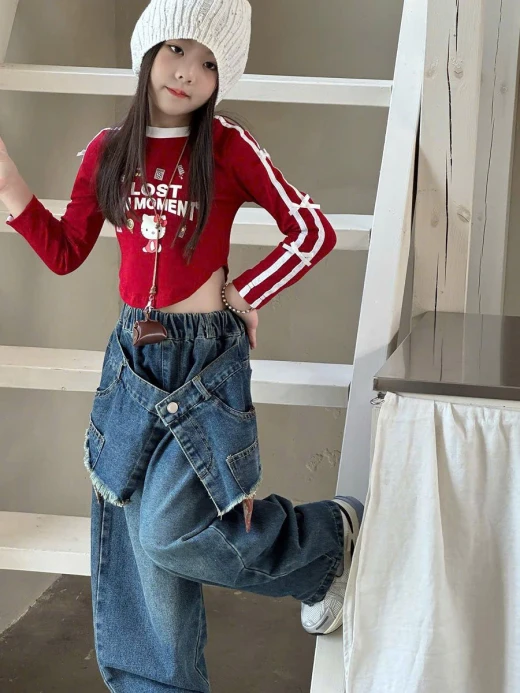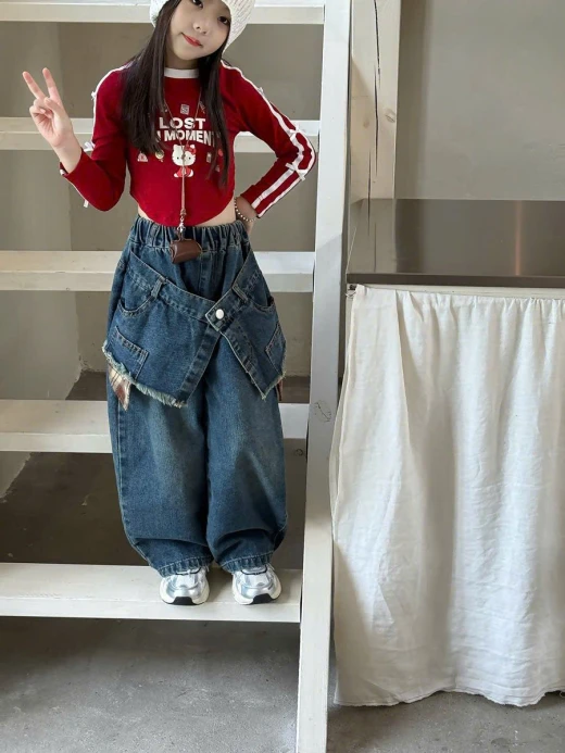 #1609b60 QUẦN JEANS ỐNG RỘNG KÈM VẠT TUA RUA ✔Size : 90-150 🌸 giá 188k 🐬 chốt 1609
