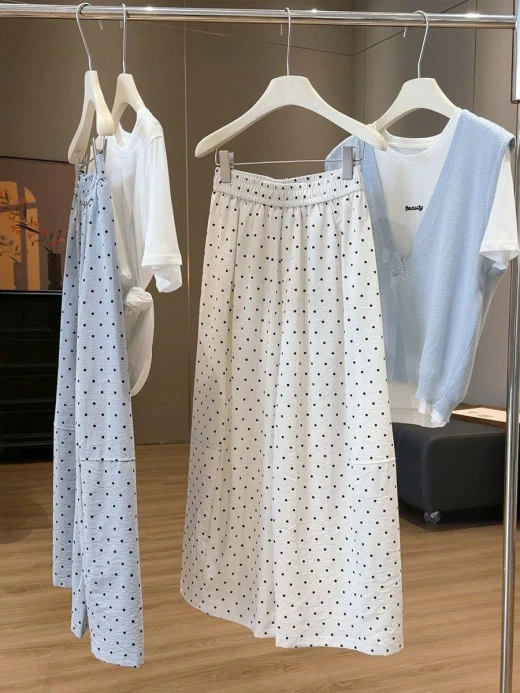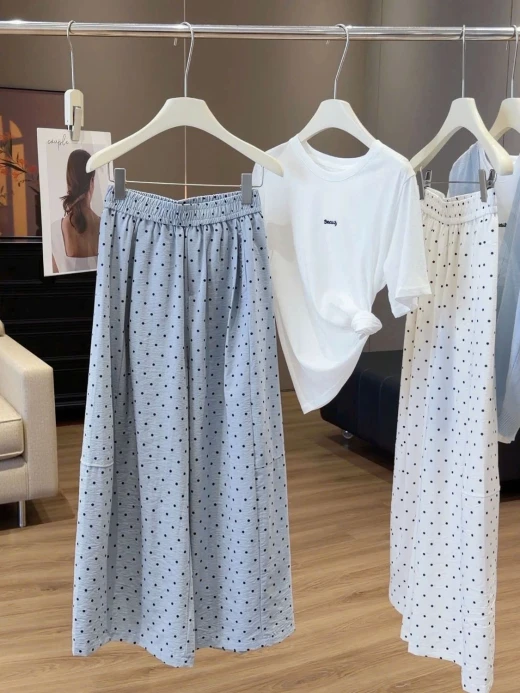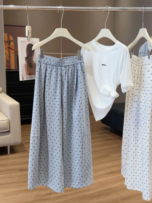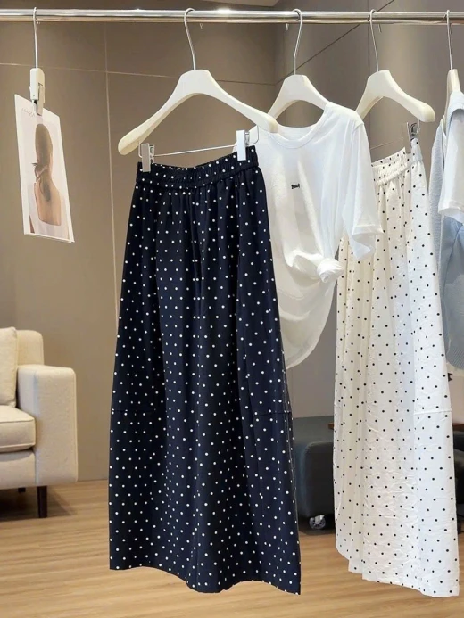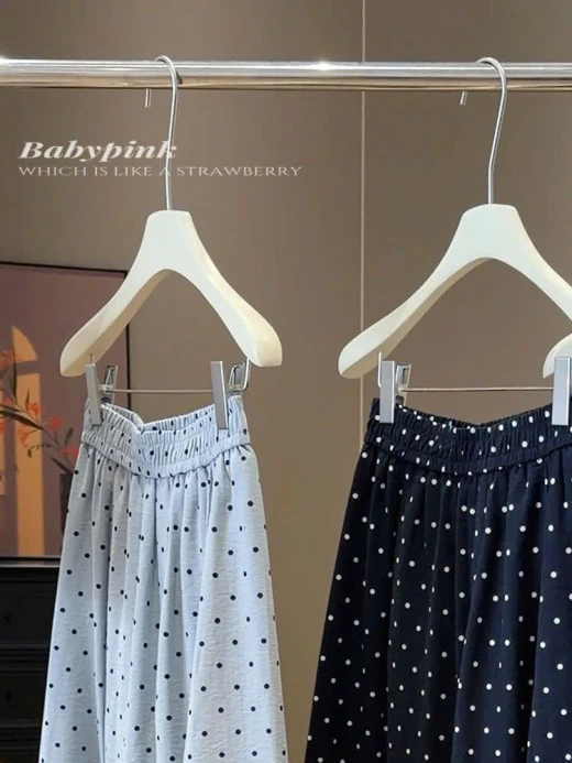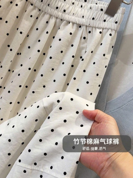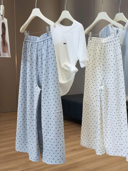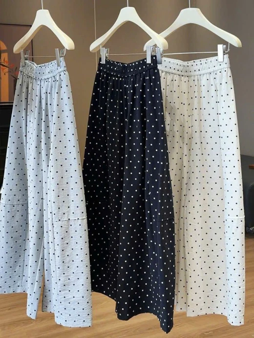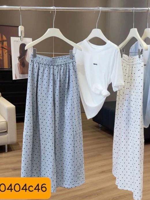 #0404c46 QUẦN ỐNG RỘNG CHẤM BI ANNA ⭐️Eo mặc cái quần mát rượii tn e mặcc cả tuần luôn đc 🤭🤭🤭 3 màu: xanh, be, đen sz ML 🌸 giá 224k 🐬 chốt 4/4