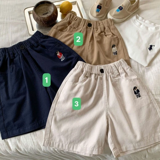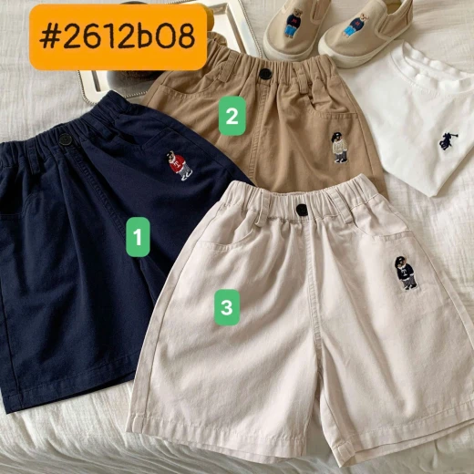 #2612b08 QUẦN SHORT GẤU CHO BÉ Đi học, đi chơi hay ở nhà đều hợp 3 màu đánh số ✅sz 90-150 90: 11-13kg 100: 13-15kg 110: 15-17kg 120: 17-20kg 130: 20-25kg 140: 25-30kg 150: 30-35kg 🌸 giá 120k 🐬 chốt 2612