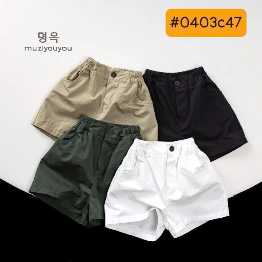 #0403c47 QUẦN SHORT THÔ BT Em lên 1 mẫu quần sooc thô hàn cân mọi oufit, mix với áo phông hay sơ mi thì khỏi bàn lun ạ, chất đẹp dã man 4 màu đánh số ✅sz 80-130 80: 9-11kg 90: 11-13kg 100: 13-15kg 110: 15-17kg 120: 17-20kg 130: 20-25kg 🌸 giá 128k 🐬 chốt 4/3
